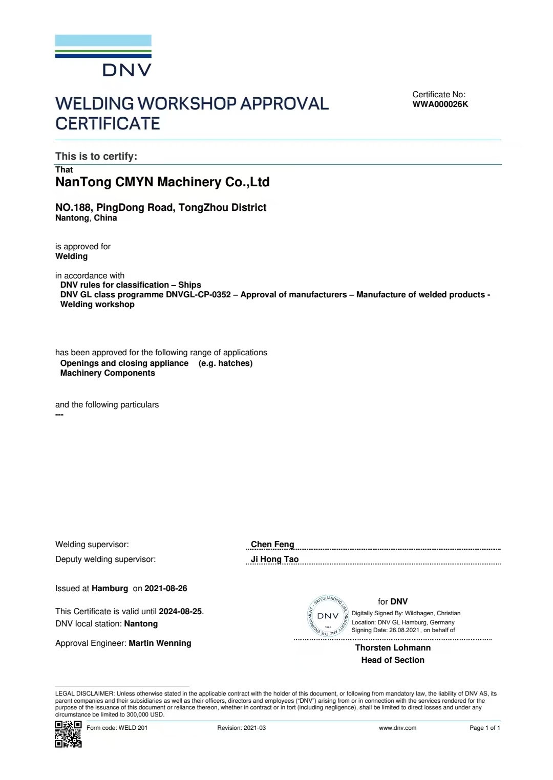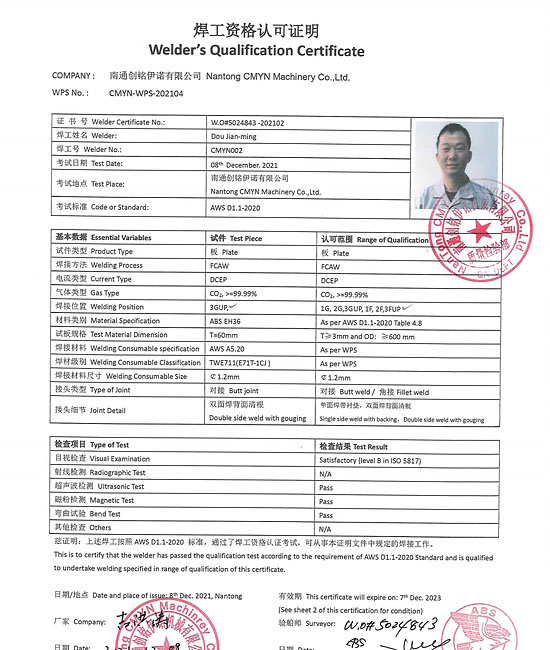 位于工業(yè)發(fā)達(dá)的南通市通州區(qū),南臨上海,地理位置十分優(yōu)越,交通極其便利。 公司生產(chǎn)面積2000㎡,主要生產(chǎn)設(shè)備有數(shù)控火焰切割機(jī),ZQ30-50臺(tái)式轉(zhuǎn)床,GT4228臥式帶鋸床,剪板機(jī),折彎機(jī),以及相關(guān)的焊接設(shè)備等,最大單機(jī)起吊能力25T。倉庫200㎡,辦公樓100㎡,公司現(xiàn)有職工20余人,其中管理人員5人,工程師2人,生產(chǎn)工人13人,其中高級(jí)技工3人,中級(jí)技工5人,初步達(dá)到相關(guān)的生產(chǎn)能力。 公司經(jīng)過多年的發(fā)展,在大型鋼結(jié)構(gòu)制作、非標(biāo)機(jī)械設(shè)備制作、船舶艙口蓋附件、滾裝散貨船配件、有色金屬鑄造(外協(xié))及加工上積累了豐富的制造經(jīng)驗(yàn),形成設(shè)計(jì),制作,安裝全套服務(wù)。 我公司始終如一貫徹以“質(zhì)量第一、用戶至上”的方針,以質(zhì)量為本誠信創(chuàng)業(yè)的企業(yè)精神,以先進(jìn)制造技術(shù),完整的檢測(cè)手段和可靠質(zhì)量保證,嚴(yán)格按照GB/T19001-2000質(zhì)量保證體系標(biāo)準(zhǔn),建立了一套完整的,運(yùn)行有效的質(zhì)量程序控制文件,落實(shí)于各職能部門,在生產(chǎn)全過程中實(shí)施,為客戶提供最優(yōu)質(zhì)的服務(wù)與產(chǎn)品。 經(jīng)不斷發(fā)展,創(chuàng)銘伊諾(CMYN)以先進(jìn)的技術(shù),精良的設(shè)備,建全運(yùn)行有效的質(zhì)量保證體系,完善的檢測(cè)手段,以及優(yōu)質(zhì)服務(wù)贏得了眾多客戶和社會(huì)各界的支持和好評(píng)。